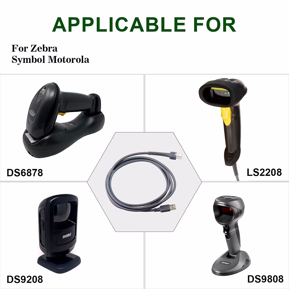 CBA-U01-S07ZAR Compatible with Zebra barcode scanner model: LS2208/AP/SR, LI2208, LS20007R-NA, LS1203, LS4008I, LS4208, LS3008, LS3408, LS4278, LS3478, LS3578, LS9208i, LS9203i, LS7708, LS7808, DS2208, DS2208-SR, DS3400, DS3408, DS3508, DS3478, DS3578, DS4208,DS4308/XD, DS6608, DS6707, DS6708 DS6700, DS6878, DS6878, DS8108, DS8178, DS9208, DS9808, DS9908, STB3578, STB4278, CS3070, etc.